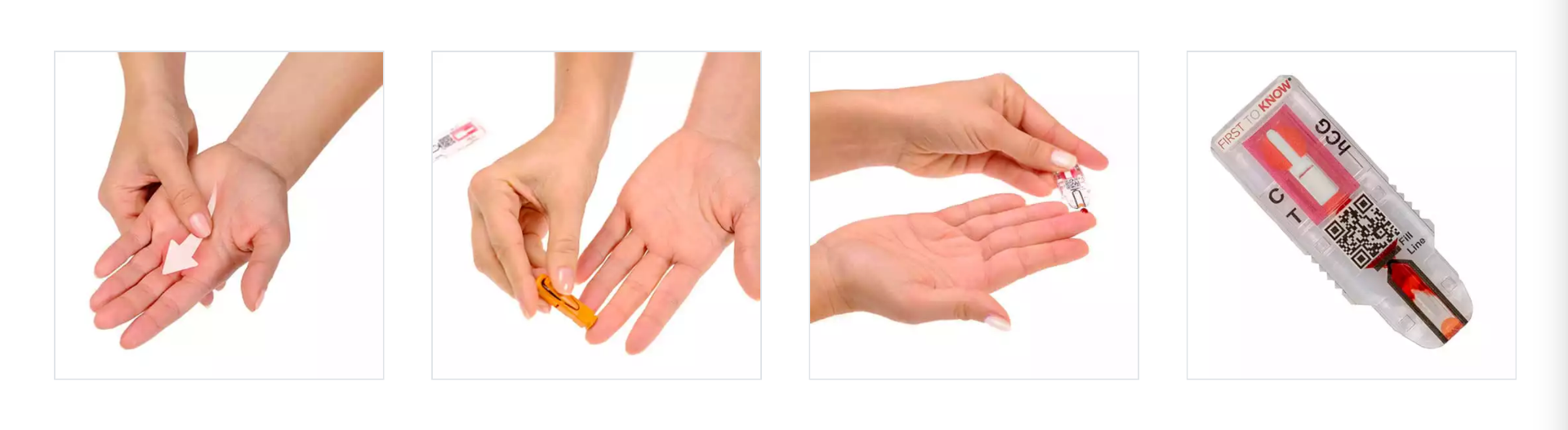 Our easy-to-use lancet allows you to comfortably and quickly obtain a small blood sample from any finger of your choosing, with many women preferring the third finger. After obtaining a sufficient blood drop by compressing the base of the fingertip with your thumb, simply touch it to the tip of the test at the receiving channel and fill it up completely.